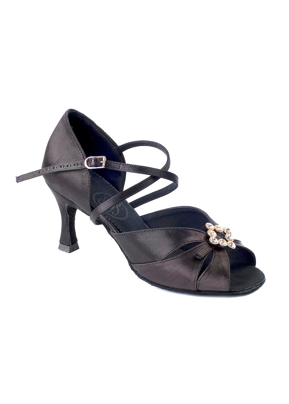 Ladies' latin and rhythm dance shoes with top broche for added spark.