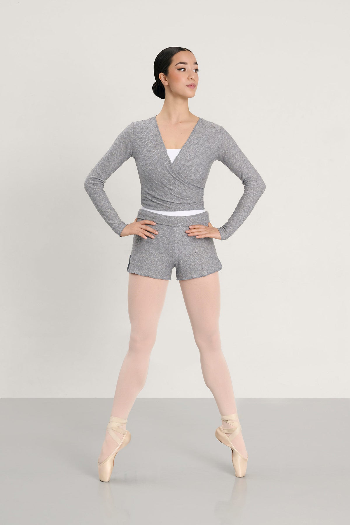 Intermezzo loose high-waisted warm up dance shorts made of soft fabric, with structure & metallic detail. Perfect for stretching, workouts and fitness routines: ballet, dance, Pilates, jazz, modern, contemporary etc.